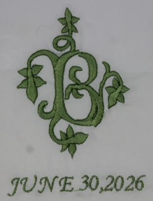 Wedding Dress insert with Embrodiered Initials and the Date.